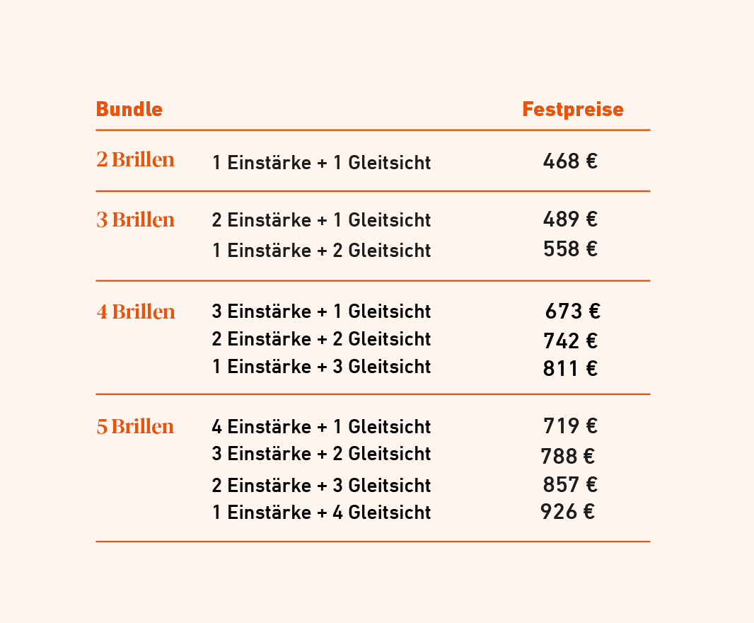 Einstärkenbrillen und Gleitsichtbrillen zum Festpreis